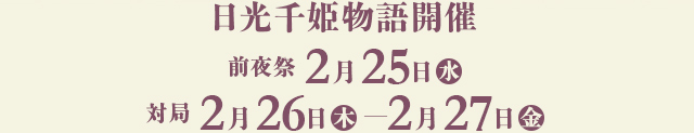 日光千姫物語は、訪れる旅人に「夢のような美しい物語」の1頁を飾って頂けるよう願っております。